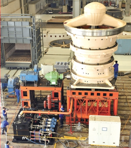 我公司生產的旋回破碎機均為液壓支承結構。破碎機啟動前,首先打開油泵向缸內充油,當破碎圓錐上升到工作位置后,關閉截止閥,同時停止油泵。這種結構的破碎機可方便地調整排礦口尺寸,使用戶獲得滿意的產品粒度和產量。當非破碎物落入破碎腔時造成破碎力增加,系統油壓也隨之增高,油缸內的油被壓入蓄能器中,從而使破碎圓錐下降,排礦口增大,排除非破碎物。非破碎物排出后,在蓄能器的作用下,油經單向節流閥比較緩慢地壓入油缸中,從而使破碎圓錐很平穩地自動復位。當非破碎物尺寸過大不能通過排礦口排出時,系統油壓繼續升高達電接點壓力表調定值時,控制系統可自動停止主電機,以保證設備安全。